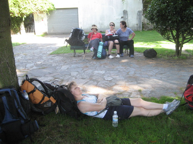 O meu rosto e o de alguns dos peregrinos, estavam tão vermelhos que mais pareciam romãs acabadas de colher. O suor escorria pelo corpo, a sede era tanta que rapidamente bebemos até mais não poder e acabámos por aproveitar aquele acolhedor local, durante umas boas 2h, para almoçar e esperar que a temperatura descesse um pouco para voltarmos ao caminho.